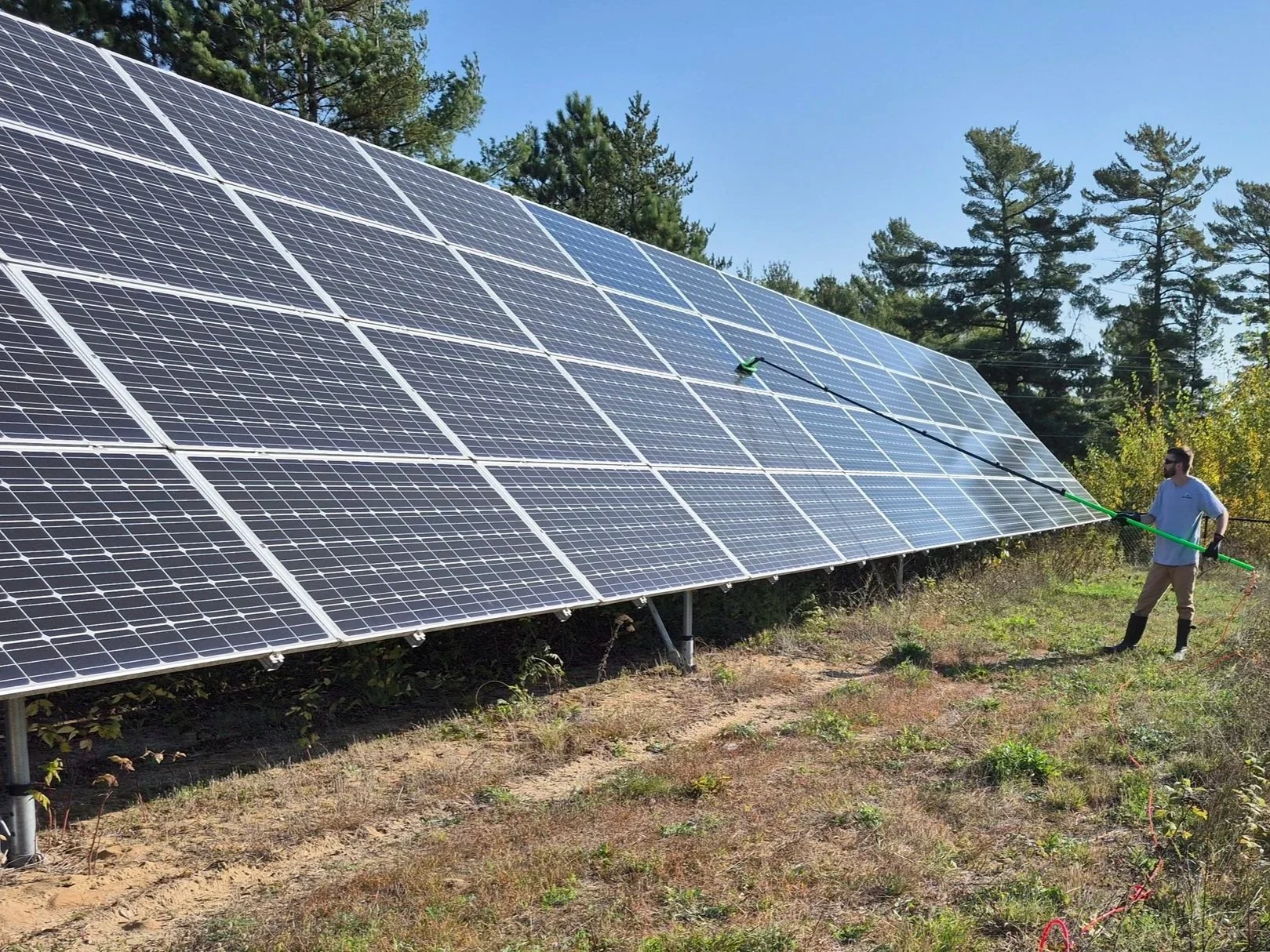 Operation and maintenance (O & M) is vital to maintaining a functional solar array. Part of the O & M is keeping your solar panels clean, insuring optimal performance. Each site is different, but at least once a year is recommended to keep your panels in peak condition.